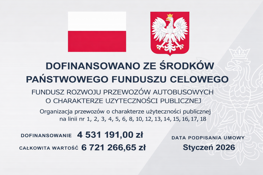 Źródło dofinansowania: Fundusz rozwoju przewozów autobusowych o charakterze użyteczności publicznej zasilany środkami budżetu państwa